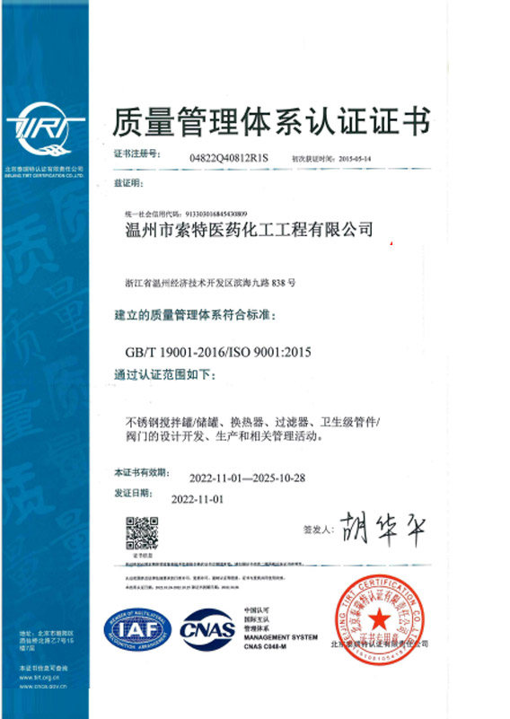 質(zhì)量管理體系認(rèn)證證書