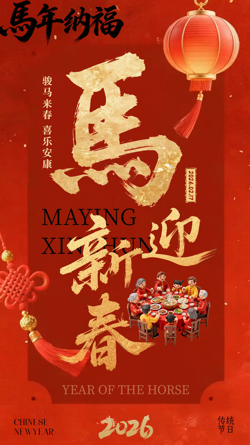 值此2026丙午馬年新春到來之際,溫州市索特醫(yī)藥化工工程有限公司全體同仁,向長期以來支持與信賴我們的全球客戶、合作伙伴及各界朋友,致以最誠摯的新春祝福!